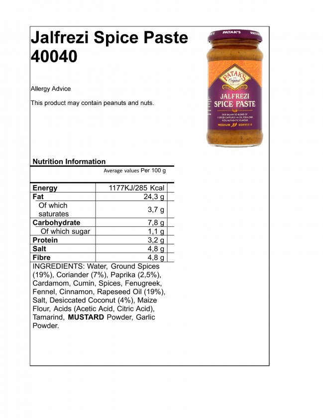 patak's authentic blend of aromatic spices, coriander, paprika & coconut for a beautifully balanced Jalfrezi dish.